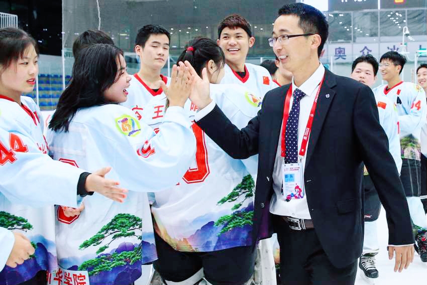 這些成績的取得,離不開集團公司全方位的投入保障和校領導的大力支持,離不開張愛臣常年的辛苦付出和默默堅守,以及他自身過硬的專業能力素養。特別是2019年,安徽省體育局采用“省隊校辦”模式,與安徽新華學院共建安徽省冰球隊、輪滑冰球隊以來,張愛臣的日歷里,一直都在廣泛調研學習、帶隊訓練比賽。他從一個螺絲、一件器材,到一支隊伍、一場比賽;從關注學生第一步站立,到精心布置賽場上各種戰術,都親力親為、精益求精。