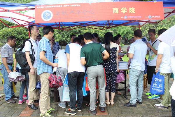 此次高招咨詢會受到學生及家長的廣泛關注,雖然天空下起了小雨,但這依然抵擋不住考生和家長的咨詢熱情,仍吸引了3萬多人前來咨詢報考問題。上午八時,高招會現場人頭攢動,不少招生展臺前已經排起了長龍,有的家長挨個咨詢意向學校的招生計劃、分數線,有的考生站在展臺旁,仔細傾聽,用紙筆記錄各學校的情況,不少熱門高校展棚里外被圍得水泄不通,出現了家長扎堆取經的現象。各大高校用展板和傳單的形式將自家的亮點和優勢展現出來,到場的招生代表耐心回答考生和家長提出的問題,介紹安徽新華學院的情況以及今年的招生政策,現場氣氛十分火爆。